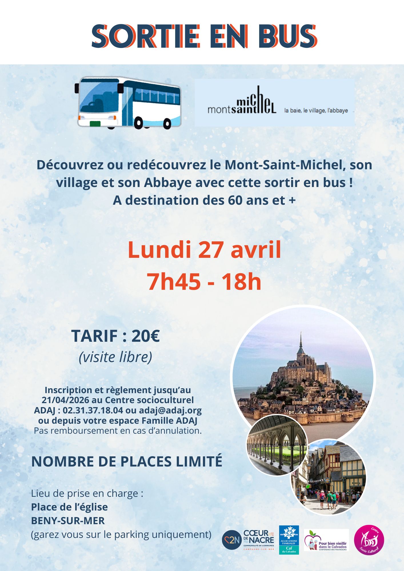 Inscription et règlement jusqu’au 21/04/2026 au Centre socioculturel ADAJ : 02.31.37.18.04 ou adaj@adaj.org